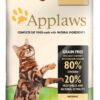 Applaws sucha karma dla kotów jest unikalną w swojej formule kompletną dietą, symulującą naturalny pokarm jakim odżywiają się koty na wolności. Koty są mięsożerne i ich system trawienny jest nastawiony na mięso. Sucha karma Applaws zawiera wysoką ilość białka zwierzęcego bez dużego poziomu węglowodanów i dodatków zbożowych występujących w innych karmach. Karma Applaws jest dzięki temu hipoalergiczna, bo nie zawiera typowych alergenów, jak soja, pszenica, kukurydza, czy innych zbóż. Zawiera zestaw antyutleniaczy, jak selen, naturalny tokoferol (witamina E), olej rozmarynowy. Naturalne kwasy Omega 3 i 6 wspomagają kondycję sierści. Wyciąg z żurawiny udrażnia drogi moczowe oraz wspomaga system trawienny. Naturalne prebiotyki wspomagają rozwój bakterii potrzebnych organizmowi do właściwej pracy układu trawiennego. Pokarm zawiera formułę odkłaczającą. Sucha Karma Applaws ma wręcz idealne proporcje zawartości wapnia i fosforu, spełniając w 100% zalecenia i limity organizacji FEDIAF.