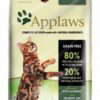 Applaws sucha karma dla kotów jest unikalną w swojej formule kompletną dietą, symulującą naturalny pokarm jakim odżywiają się koty na wolności. Koty są mięsożerne i ich system trawienny jest nastawiony na mięso. Sucha karma Applaws zawiera wysoką ilość białka zwierzęcego bez dużego poziomu węglowodanów i dodatków zbożowych występujących w innych karmach. Karma Applaws jest dzięki temu hipoalergiczna, bo nie zawiera typowych alergenów, jak soja, pszenica, kukurydza, czy innych zbóż. Zawiera zestaw antyutleniaczy, jak selen, naturalny tokoferol (witamina E), olej rozmarynowy. Naturalne kwasy Omega 3 i 6 wspomagają kondycję sierści. Wyciąg z żurawiny udrażnia drogi moczowe oraz wspomaga system trawienny. Naturalne prebiotyki wspomagają rozwój bakterii potrzebnych organizmowi do właściwej pracy układu trawiennego. Pokarm zawiera formułę odkłaczającą. Sucha Karma Applaws ma wręcz idealne proporcje zawartości wapnia i fosforu, spełniając w 100% zalecenia i limity organizacji FEDIAF.