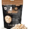 Liofilizacja sprawia, że produkt jest bardzo, bardzo lekki. Zakładając 80% wilgotności świeżego mięsa przed suszeniem, potrzeba około 5 razy więcej świeżego mięsa do wyprodukowania jednego liofilizowanego przysmaku. Catz Finefood Purrrrly to wysoce skoncentrowana uczta!