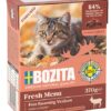 Karma premium dla kotów, która składa się w ponad 94% z mięsa lub ryb, podrobów i bulionów oraz około 2% węglowodanów roślinnych, 1% składników mineralnych i niewielkiej ilości wysokiej jakości oleju. A ponieważ jest przyjazna kotom, w składzie nie znajdziesz zbóż, glutenu ani dodatku cukrów. Gratka dla fanów prawdziwego smaku!