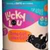 Gdzie indziej jest nudne standardowe jedzenie – Lucky Lou jest dostępne w 18 różnych odmianach smakowych w saszetkach 125 g oraz w puszkach 200 g i 400 g. Karma produkowana w Niemczech.
